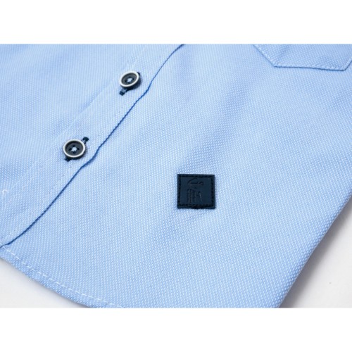 На сорочці , з лівого боку знаходиться - пришита накладна кишеня, яку прикрашає ґудзик з малюнком якоря, а також нашивка синього кольору під колір метелика.