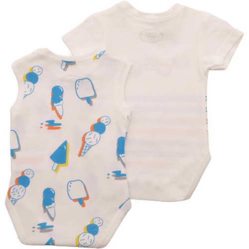 • Чудовий набір з двох різних моделей симпатичних трикотажних бодіків для малюка: боді-маєчка (без рукавів) та боді-футболочка (з коротким рукавом).