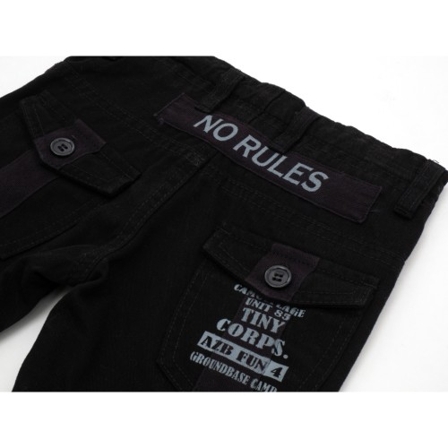 • Щільні, дуже гарні, стильні джинси гладко-чорного кольору із зручною посадкою та стильними принтовими написами для хлопчика від відомої торгової марки AZIZ.