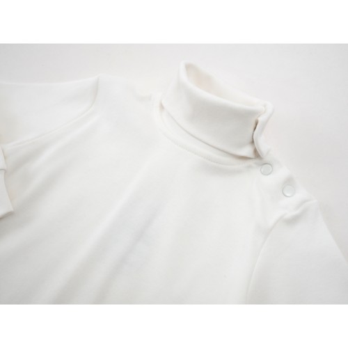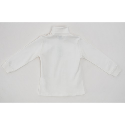 • Однотонний кремовий дитячий трикотажний гольф з високою горловиною на кнопочках та довгими рукавами на манжетах.