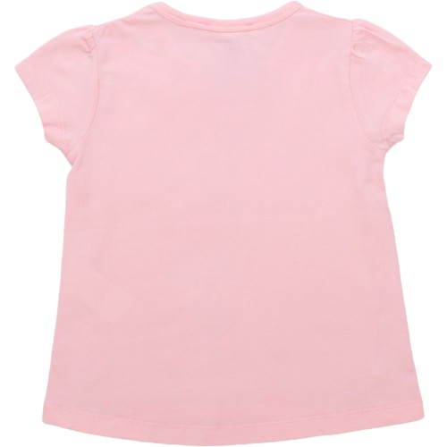 Футболочка вільна, трохи розширеного А-силуету, з короткими рукавчиками. Горловина оброблена м'якою трикотажною бейкою. Перед футболки прикрашений красивим, яскравим, об'ємним кольоровим принтовим малюнком.