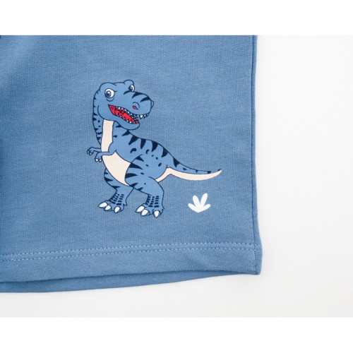 • Футболочка прямого покрою, з короткими рукавами та круглою горловиною, гладенька та приємна на дотик. Прикрашена спереду яскравим кольоровим якісним принтовим малюнком із веселими динозавриками та автомобілями. Горловина оброблена м'якою тонкою подвійною трикотажною гумкою. Для невеликих розмірів у плечовому шві передбачена застібка на фірмові перламутрові ґудзики.