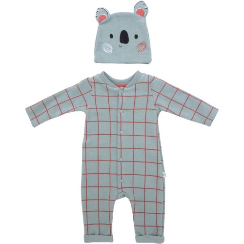 Трикотажний утеплений комбінезон-«чоловічок» з шапочкою «Коала» для хлопчика.