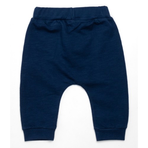 Штанці темно - сині, зручні та дуже приємні на дотик, без середнього шва (шва сидіння), під гумку в поясі та з манжетиками по низу, забезпечать дитині повну свободу рухів та оптимальну посадку по фігурі. Розраховані під підгузок.