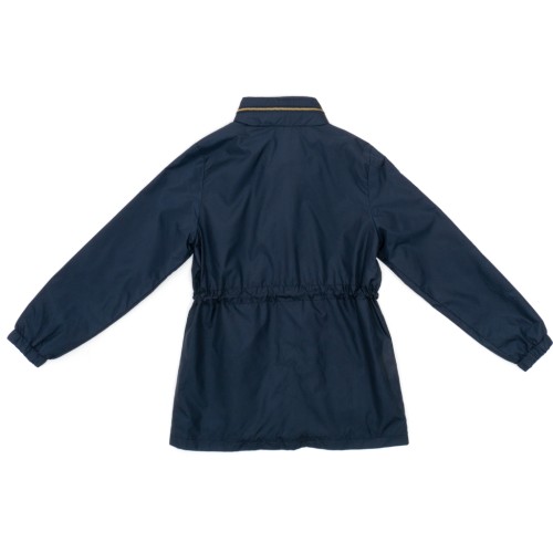 • На таліїї виконана куліска з невеличкими металевими люверсами, та протягнутим плетеним, ефектним, круглим жовто-синім шнурком з вкрапленнями золотистого люрексу, яким за бажанням можна приталити об'єм куртки до комфортного.