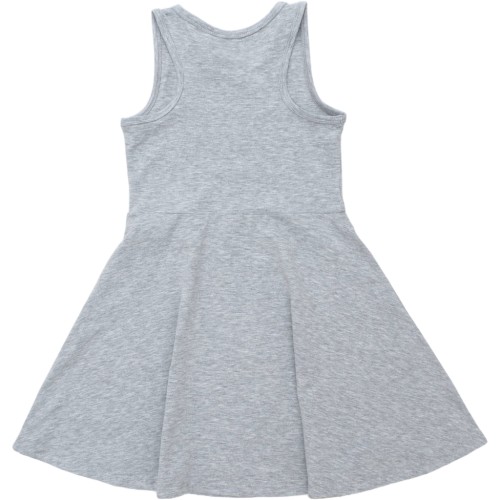 • Сукня без рукавів, сірого меланжевого кольору, відрізна по лінії талії.