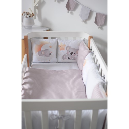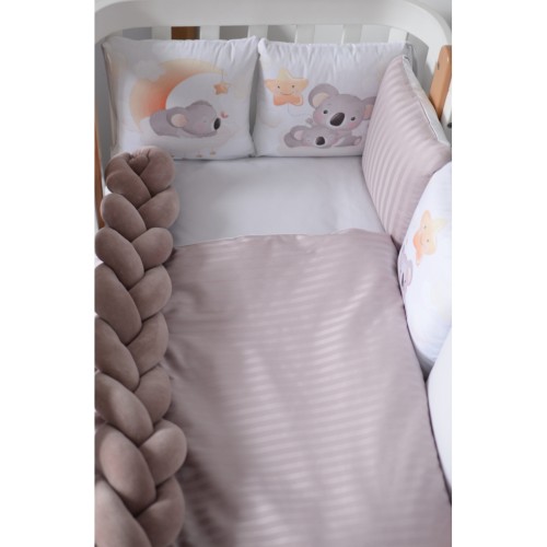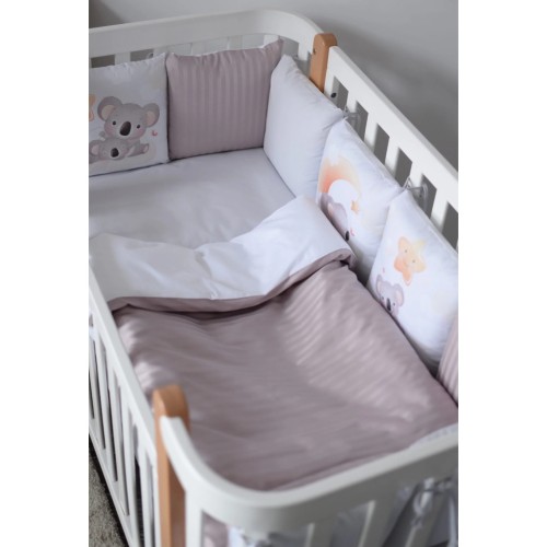 Koala - постільний комплект в ліжечко для новонароджених від Baby Veres з колекції Classic. Виконаний в поєднанні вишуканого страйп сатину, сатину та ранфорсу.