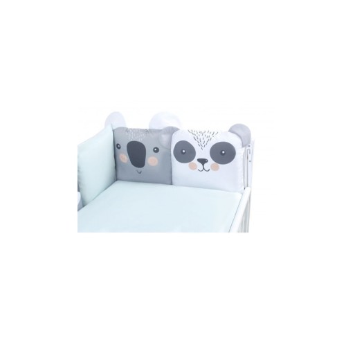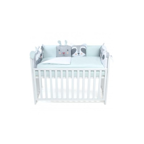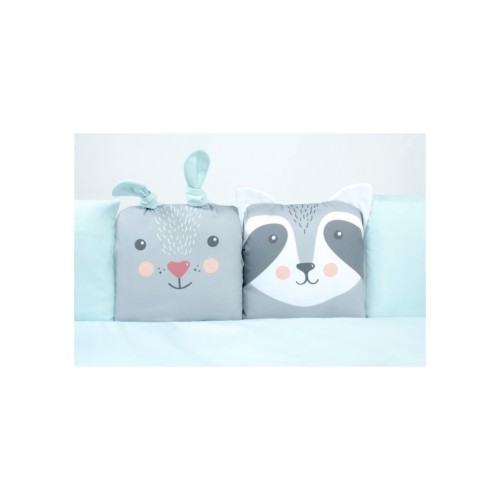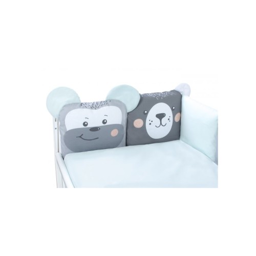 Zoo mint - постільний комплект з колекції Cuties. 6 з 8 подушечок захисту виконані у вигляді мордочок тваринок з об`ємними вушками.