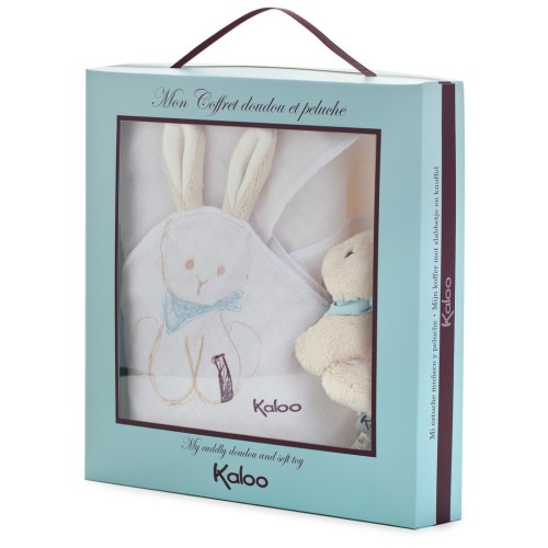 Подарунковий набір французького бренду Kaloo складається з двох предметів: невеличкий плед і м’яка іграшка. Такий набір – чудовий подарунок для новонародженого. Плед можна використовувати для коляски, в автомобілі. Ковдра із зображенням кролика. У комплекті точно такий же кролик - м’яка іграшка. Вироби дуже ніжні, приємні на дотик, виготовлені з гіпоалергенних матеріалів. Для дітей з народження.