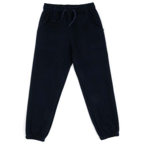 • Зручні, вільні однотонні спортивні штани для хлопчика, утеплені флісовим начосом, під гумку в поясі та по низу, без зайвих прикрас.