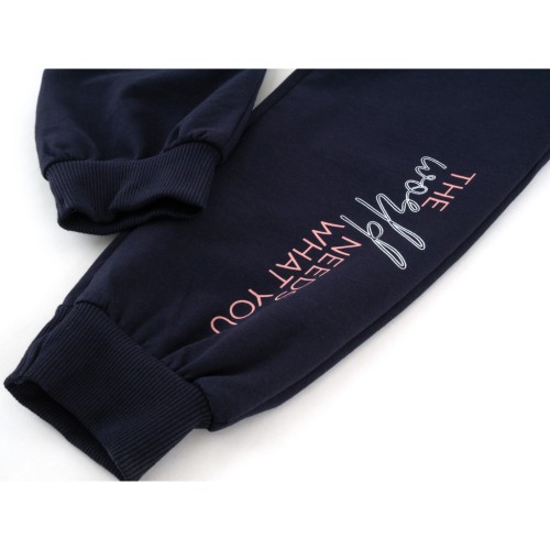 • Зручні, не широкі штани з двома скошеними прорізними кишенями, на манжетах та під гумку в поясі, забезпечать комфорт та оптимальну посадку по фігурі. Манжети штанів та пояс - якісна, подвійна, щільна трикотажна гумка. Пояс посилений широкою, вставленою всередину, «гумкою» (рібана). Штани прикрашені аналогічним якісним принтовим накатом, як на кофті.