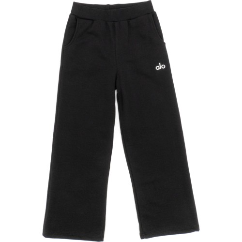 • Модний, ефектний трикотажний костюм для дівчинки в класичному гладко-чорному кольорі: вільний світшот і прямі широкі штани-труби.