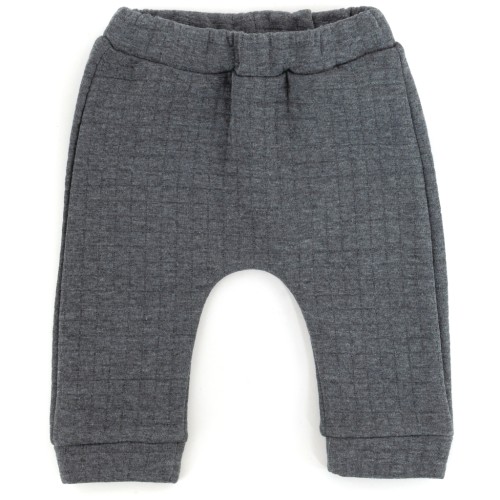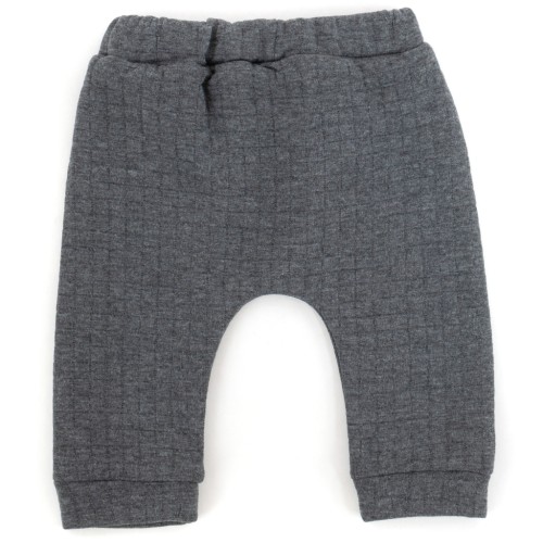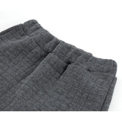 • Штани зручні, без середнього шва (шва сидіння), практичного сірого кольору з подвійного фактурного трикотажу, мають посадку під підгузок. Еластичний пояс з основного трикотажу, з широкою додатковою гумкою, і зручний крій, забезпечать дитині повну свободу рухів і оптимальну посадку по фігурі.
