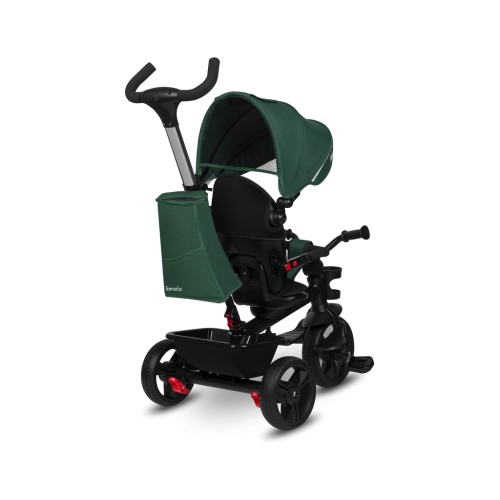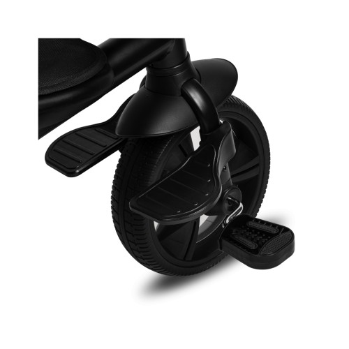 Триколісний велосипед Haari, завдяки широким можливостям регулювання, адаптується до дитини і на довгі роки буде її надійним супутником при грі на відкритому повітрі. Унікальний дизайн дозволяє адаптувати Haari до віку дитини - наймолодший може використовувати його як прогулянковий велосипед з вільним ходом, Яким сидінням можна поставити вперед або назад, а батько контролює маршрут за допомогою регульованої ручки. На точкових ременях безпеки є спеціальні ремені, які дбають про чутливу шкіру молодого водія. На сидіння також є знімна дуга безпеки. На козирку є світловідбивна смужка, завдяки якій дитина краще видно. Безкамерні колеса з високоякісного поліуретану поєднують у собі тягу та амортизацію надувних коліс із міцністю та повною нечутливістю до проколів. Ці колеса, що не обслуговуються, завжди готові до роботи - без підкачування! Місткий кошик та додаткова сумка означають, що малюк зможе брати із собою улюблені іграшки. Пляшечку, термос або підсклянник можна прикріпити до керма або батьківської ручки.