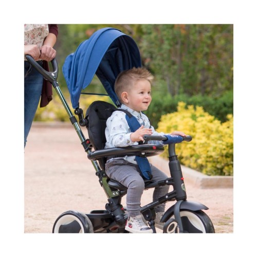 Функціональний велосипед з м'яким регульованим сидінням, великим захисним капюшоном, батьківською ручкою і блокуванням педалей і керма. Велосипед можна скласти до невеликого розміру дуже простим способом. Унікальна система складання дозволить без проблем перевозити велосипед в багажнику, брати з собою в дорогу, на прогулянку або подорож.
