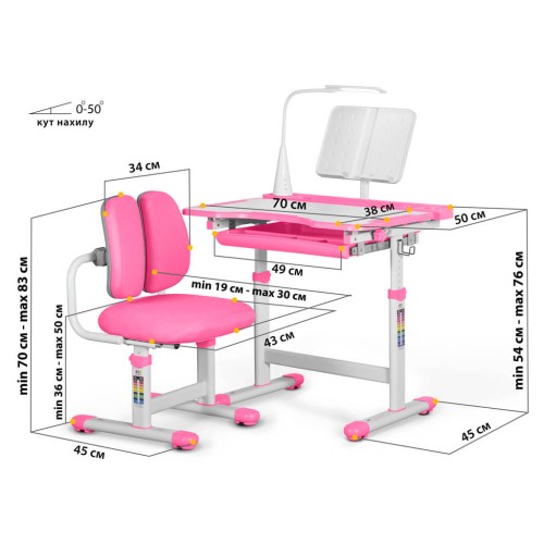 з похилою стільницею; з лампою; зі стільцем в комплекті