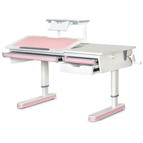 Під стільницею розміщується місткий органайзер, пенал для канцтоварів та дерев'яний висувний ящик для зберігання зошитів. Така різноманітність функціональних елементів столу допоможе організувати робочий простір вашої дитини. Висота столу легко регулюється за допомогою черв'ячного механізму ручкою, що розташовується з будь-якого боку. Стіл «зростає» разом із вашою дитиною і прослужить не один рік.
