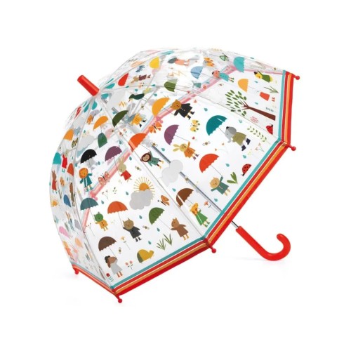 Барвиста парасолька Djeco захистить вашу дитину від дощу. Ручка пластикова, парасолька відкривається вручну. Парасолька має систему безпечного відкривання, що захищає пальці від травм, а кінці стрижнів виконано у вигляді пластикових кульок. Розміри розкритої парасольки: 70 х 68 см. Розміри в складеному вигляді: 5 х 68 см.