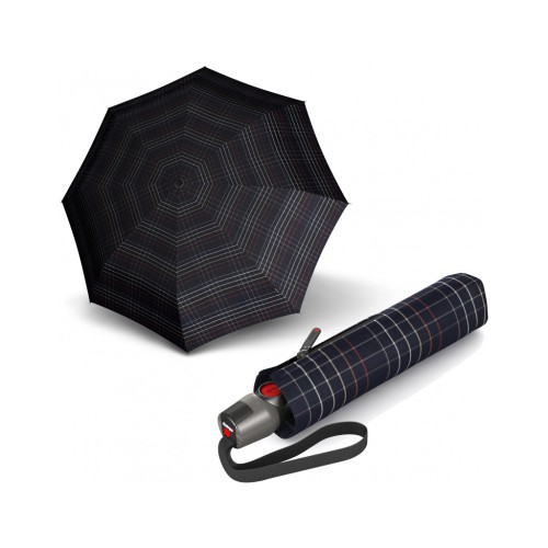 Knirps T.200 Medium Duomatic (Check Black)високоякісна автоматична парасолька з класичним дизайном чорного кольору в клітинку. Великий купол 98 см на 8 спицях, вітростійкий. Стильна сіра ручка з фірмовою червоною кнопкою та логотипом бренду.