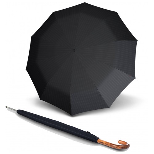 Knirps T.771 - преміальна чоловіча парасолька-тростина з дерев'яною ручкою-гаком ручної роботи. Елегантна модель із напівавтоматичним механізмом, а купол досить великий для двох.