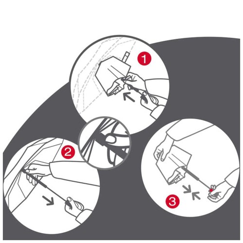 Knirps X1 - парасолька зі стильним жорстким чохлом, що нагадує маленький клатч. Завдяки спеціальній петельці на кнопці чохол можна легко прикріпити до сумки чи рюкзака, а також захистити вміст сумки від дощу. Колекція завоювала премію за найкращий дизайн.