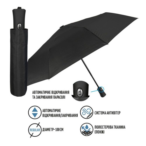 Парасоля Perletti Ombrelli promozionali повний автомат Чорна (96009-01)
