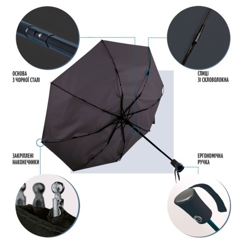 Складана автоматична парасоля Ombrelli promozionali з системою антивітер – це сучасна модель, при виробництві якої були використані інноваційні матеріали останнього покоління.