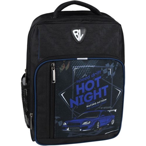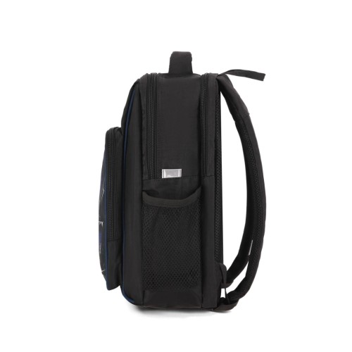 У рюкзаку — два просторі відділення на блискавці, де легко помістяться підручники, зошити або улюблені іграшки. Є також менше за розміром відділення з органайзером для канцтоварів — з ним можна обійтися без пенала. Спереду розташована зручна кишеня на блискавці для дрібниць — наприклад, телефону чи ключів. По боках — сітчасті кишені для пляшки з водою або термоса.
