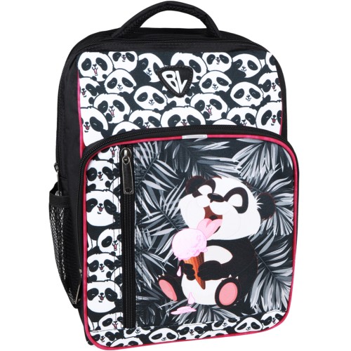 У рюкзаку — два просторі відділення на блискавці, де легко помістяться підручники, зошити або улюблені іграшки. Є також менше за розміром відділення з органайзером для канцтоварів — з ним можна обійтися без пенала. Спереду розташована зручна кишеня на блискавці для дрібниць — наприклад, телефону чи ключів. По боках — сітчасті кишені для пляшки з водою або термоса.