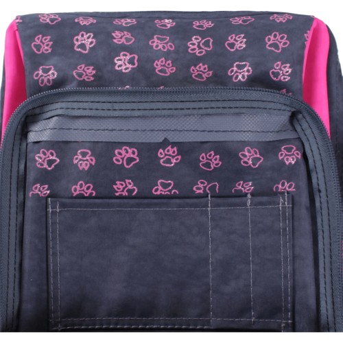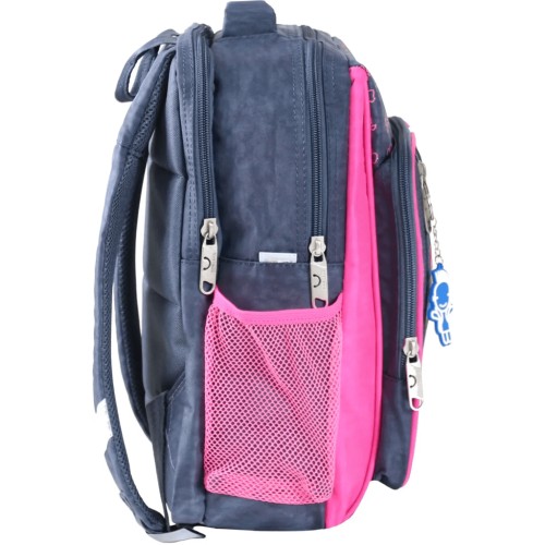 У рюкзаку — два просторі відділення на блискавці, де легко помістяться підручники, зошити або улюблені іграшки. Є також менше за розміром відділення з органайзером для канцтоварів — з ним можна обійтися без пенала. Спереду розташована зручна кишеня на блискавці для дрібниць — наприклад, телефону чи ключів. По боках — сітчасті кишені для пляшки з водою або термоса.