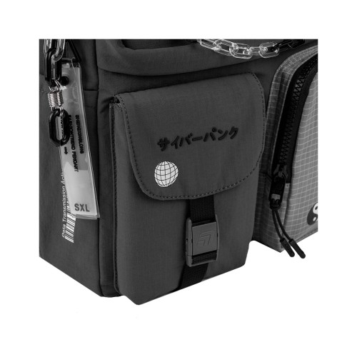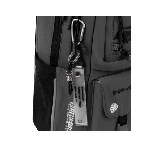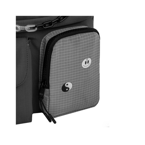 • декор: тканина - матовий ріпстоп; об'ємний пластикоподібний принт; друк, що світиться в темряві; двокольоровий пластиковий ланцюжок на карабінах; підвіска на карабіні.