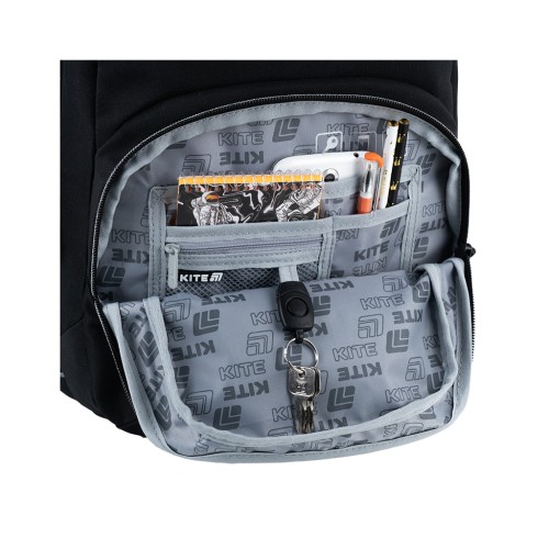• велика передня кишеня, всередині якої – органайзер для канцелярії, кишенька для дрібниць і знімна ключниця;