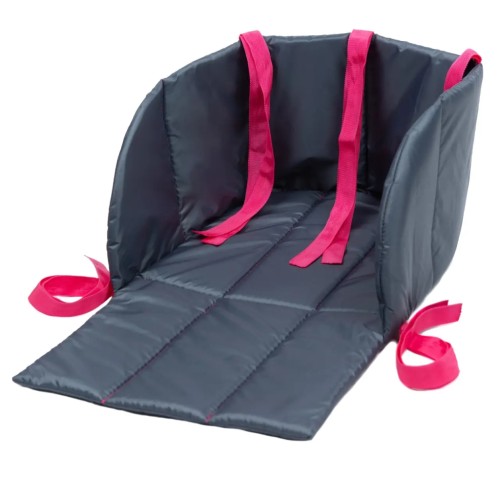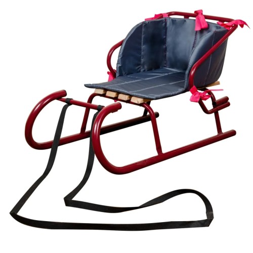 Вологостійка поверхня виробу запобігає промоканню та забезпечує практичність і легкий догляд, а внутрішнє наповнення поролоном передбачає м'якість та зручність. Ще однією перевагою матрацика є оснащення бічними бортиками та спинкою висотою 20 см. Матрац-підстилка надійно фіксується до санчат за допомогою контрастних рожевих стрічок.