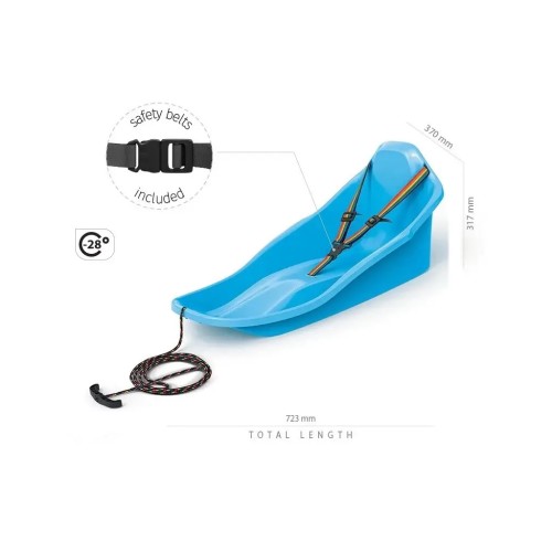 Санчата виготовлені з міцного пластику, що стійкий до низьких температур. Ідеально профільована форма забезпечує комфорт використання та стабільність під час ковзання. Для безпеки наймолодших Санки Prosperplast Topo оснащені зручною спинкою та ременями безпеки. Невелика вага та наявність мотузки-тягача з ручкою дозволяють дітям самостійно транспортувати виріб та піднімати санчата на гору. Відсутність гострих країв робить санчата повністю безпечними для дітей.