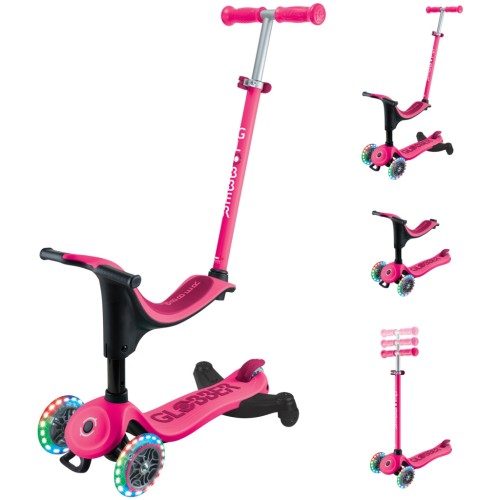 Самокат Globber Go UP Sporty Lights 360° — це триколісний самокат із сидінням для малюків, який трансформується у біговел для катання та самокат для дітей. Режими самоката/каталки та біговела розроблені для малюків віком 15-36 місяців, а режим самоката рекомендується для дітей віком 3-7+.