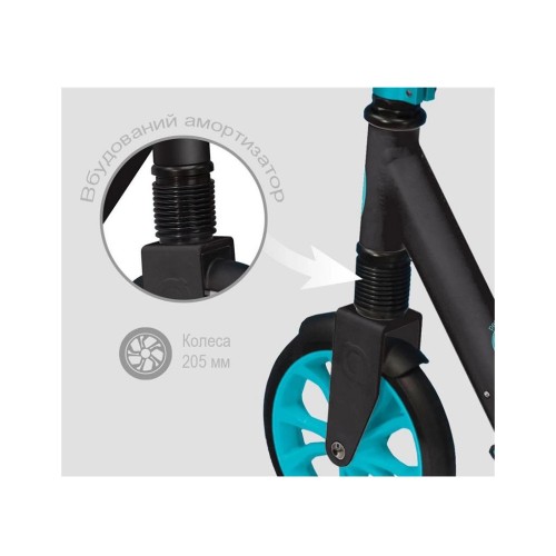 • Вбудований амортизатор переднього колеса забезпечує максимальне поглинання ударів для комфортнішого катання