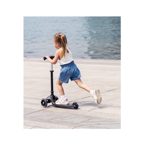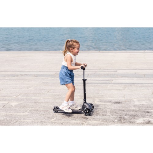 Триколісна конструкція забезпечує чудову стабільність, а система повороту за допомогою нахилу тіла допомагає дитині розвивати баланс, координацію та впевненість у рухах. Світлові поліуретанові колеса з LED-підсвіткою вмикаються під час руху без батарейок, роблячи кожну прогулянку ще яскравішою та помітнішою.