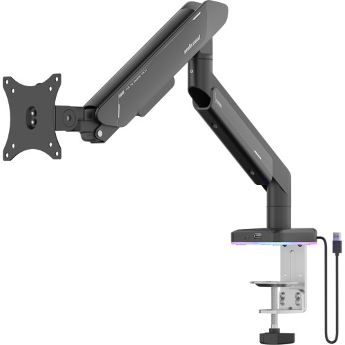 Якщо ви цінуєте функціональність та індивідуальність, вам точно сподобається RGB-підсвічування кронштейна з 31 режимом, яким ви можете керувати за допомогою сенсорної кнопки. Це не тільки підкреслить ваш ігровий сетап, але й додасть яскравих ноток вашому робочому простору. Завдяки наявності інтерфейсів type-c та USB-A, ви зможете легко підключити свої гаджети для зарядки або синхронізації з ПК.