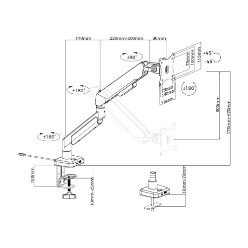 Кронштейн також дбає про естетичний вигляд вашого робочого місця. Завдяки наявності прихованого укладання дротів та інтегрованій системі прокладки кабелів, ви зможете зберегти порядок на столі і уникнути безладу з проводами. Міцна металева конструкція кронштейна не лише забезпечує його стійкість, але й робить його надзвичайно довговічним.