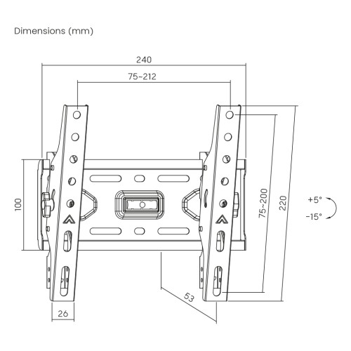 • Відповідає стандартам VESA: 75x75, 100x100, 100x150, 150x100, 100x200, 200x100, 150x150, 200x200 мм