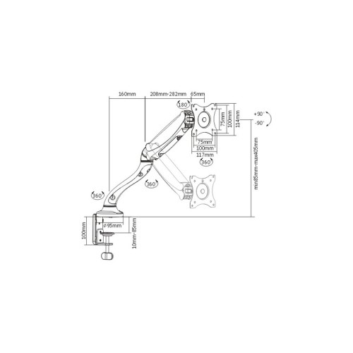 Завдяки вбудованій газовій пружині, положення монітора змінюється плавно, без зайвих зусиль, а можливість фіксації у будь-якій точці забезпечує зручність та ефективність вашої роботи. Кронштейн налаштовується під вагу конкретного монітора, що гарантує стабільність і безперебійну роботу в будь-який момент.