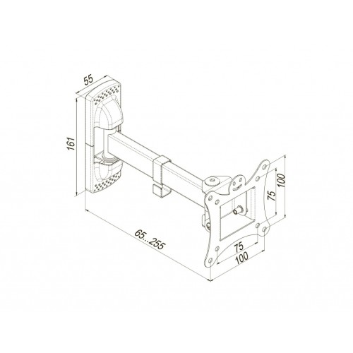 Кронштейн підходить для плазмових, LCD, LED телевізорів і моніторів з діагоналлю 13-28 дюйма і вагою до 15 кг. VESA: від 50 × 50 мм до 100 × 100 мм