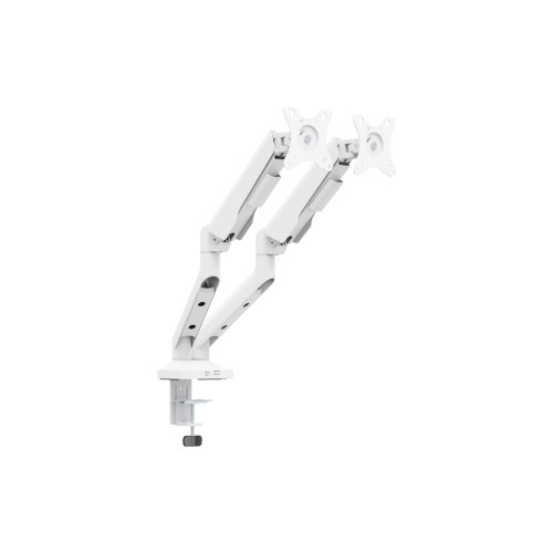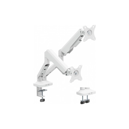 Цей кронштейн представлено у незвичайному білому кольорі, що робить його стильним акцентом у будь-якому інтер'єрі. Конструкція виготовлена із сталі, що забезпечує надійність і довговічність. Завдяки максимальному навантаженню до 12 кг, він може підтримувати два монітори одночасно, перетворюючи ваше робоче місце на мультимоніторну станцію, забезпечуючи безкомпромісну стабільність під час експлуатації.