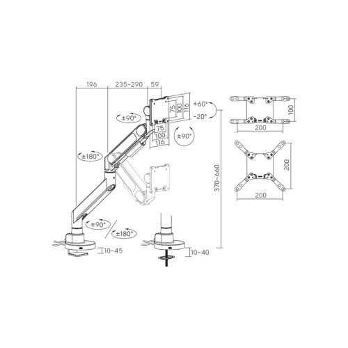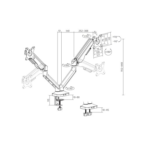 Однією з ключових переваг цього кронштейна є його поворотно-похилій механізм, що пропонує безмежні можливості для налаштування. Ви можете регулювати кут нахилу від +90° до -90°, а також здійснювати поворот в аналогічних межах, що дозволяє створити ідеальні умови для роботи. Завдяки шести ступеням свободи монітори можна налаштовувати у різних положеннях, забезпечуючи максимальний комфорт під час використання. Це робить його ідеальним рішенням як для професіоналів, так і для ентузіастів сучасного дизайну.
