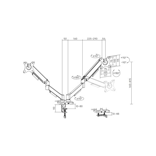 Цей кронштейн виготовлений з міцного пластику та металу, що забезпечує його довговічність та надійність. Завдяки максимальному навантаженню до 9 кг, він легко утримує більшість актуальних моделей моніторів. Кут нахилу від +90° до -90° і поворот до 180° дозволяють Вам налаштувати монітор так, як зручно саме вам, покращуючи ергономіку робочого місця.