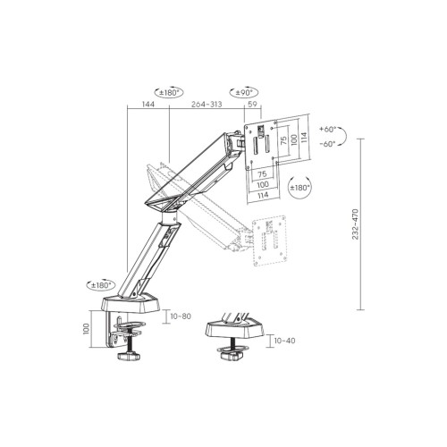 Основна перевага OfficePro MAG200G – це поворотно-похилий механізм, що гарантує зручність у використанні. Маючи п'ять ступенів свободи, цей кронштейн дозволяє налаштовувати монітор під будь-яким кутом: ви можете легко змінювати нахил від +60° до -60° та повертати екран на 180° в обох напрямках. Це особливо зручно для тих, хто працює з різними типами контенту або часто спілкується з колегами, сидячи за одним столом.
