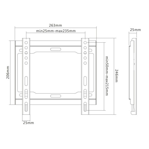 Монтаж на стіну здійснюється швидко і легко, завдяки повному комплекту деталей для встановлення. Завдяки підтримці стандарту VESA (100 x 100, 200 x 100, 200 x 200), ви без зусиль зможете поєднати кронштейн з відповідною задньою поверхнею телевізора чи монітора. Це кріплення витримує вагу до 30 кг, що гарантує безпеку монтажу.