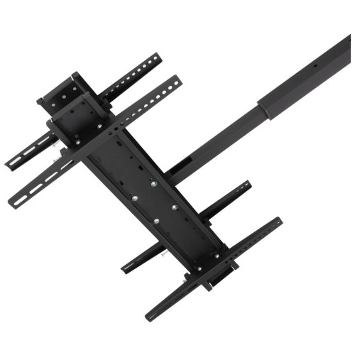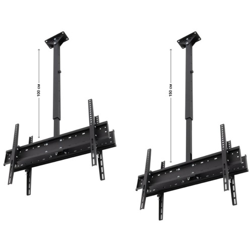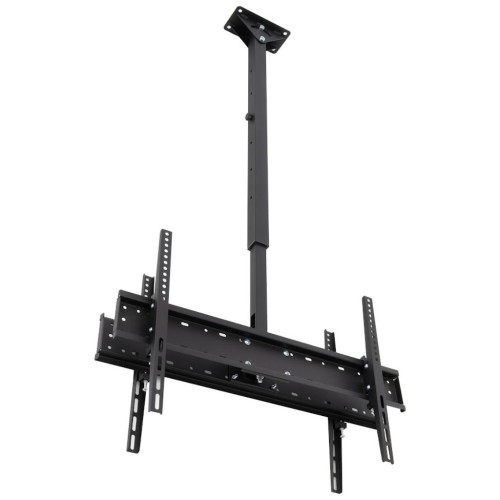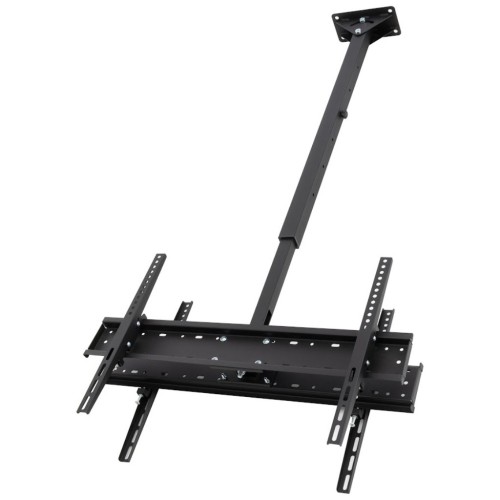 Кронштейн Sector СМ-602Т - це інноваційне стельове кріплення, призначене для надійної та безпечної установки двох телевізорів. Створений спеціально для сучасних умов, він забезпечує ідеальне рішення для комерційних просторів, таких як готелі, ресторанні комплекси та аеропорти. Завдяки здатності витримувати максимальне навантаження до 50 кг, цей кронштейн сумісний з екранами діагоналлю від 37 до 70 дюймів, що робить його універсальним вибором для великої кількості телевізійних моделей.