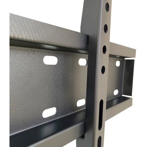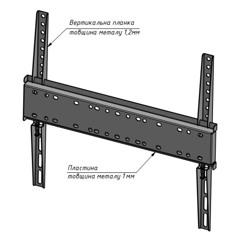 Стриманий та стильний вигляд кронштейна у чорному кольорі гармонійно доповнює дизайн приміщення. Виготовлений з міцного металу, він забезпечує безпеку телевізора при експлуатації, витримуючи максимальне навантаження до 40 кг. Додатковою перевагою є невелика відстань від телевізора до стіни - всього 40 мм, що надає приміщенню акуратного та сучасного вигляду.