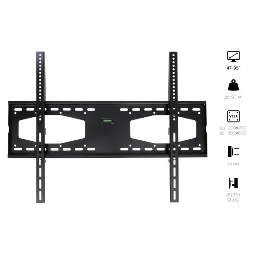 Максимальне навантаження кронштейна становить до 90 кг, що гарантує безпеку для важких телевізійних панелей. Крім того, мала відстань до стіни всього 35 мм надає вашому інтер’єру більш стильного та акуратного вигляду.